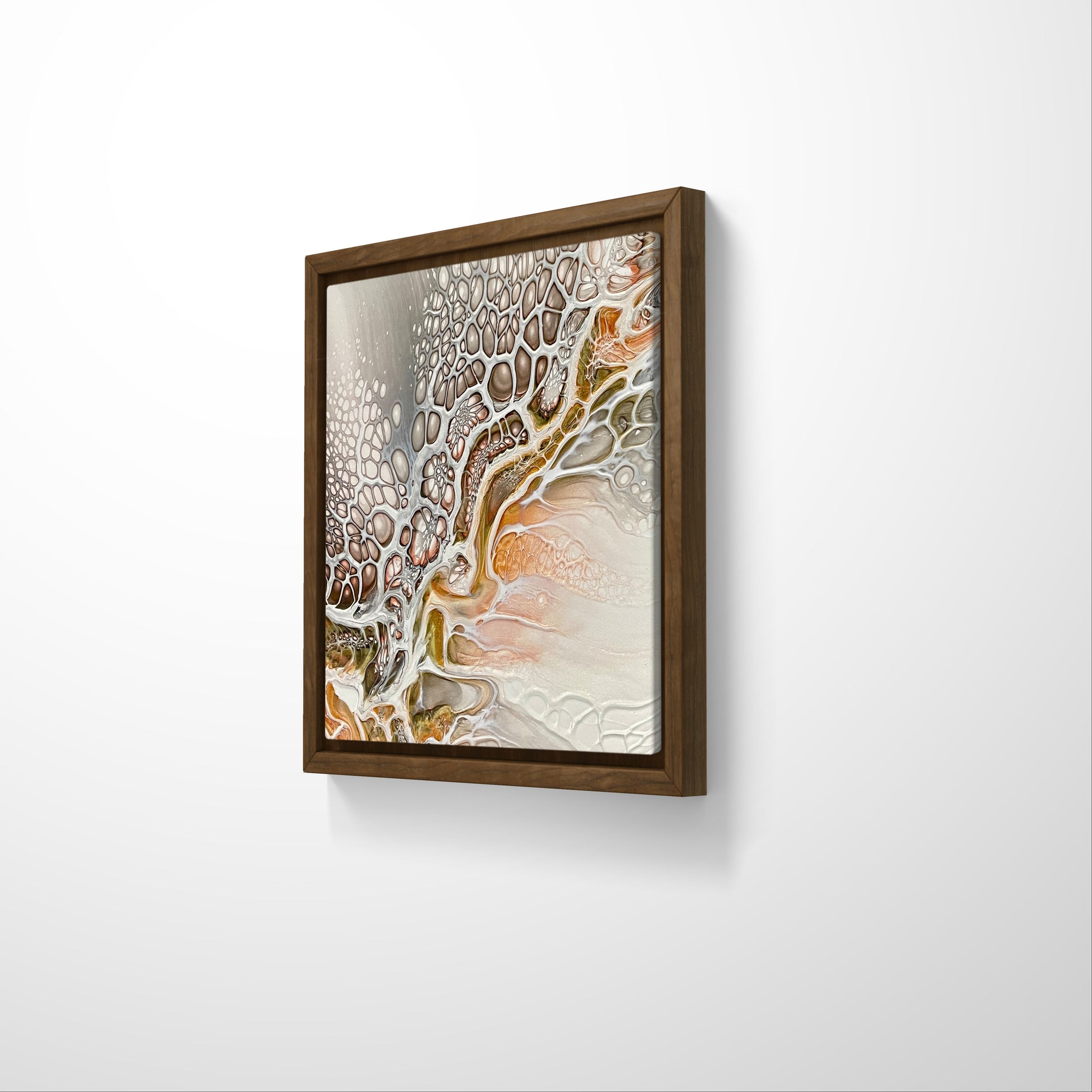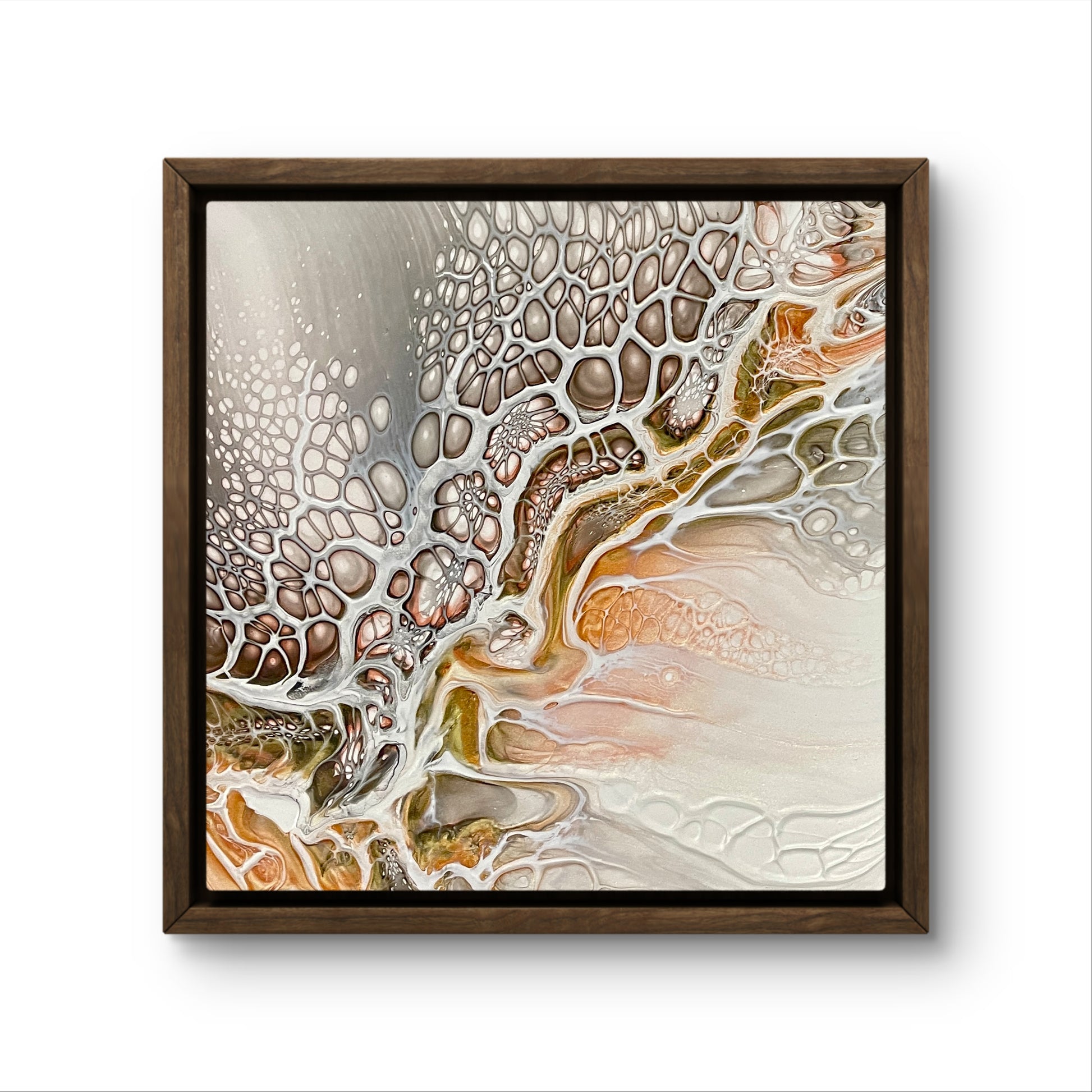 Cobblestones is a striking abstract acrylic pour artwork evoking the raw, organic energy of geological formations and natural erosion.