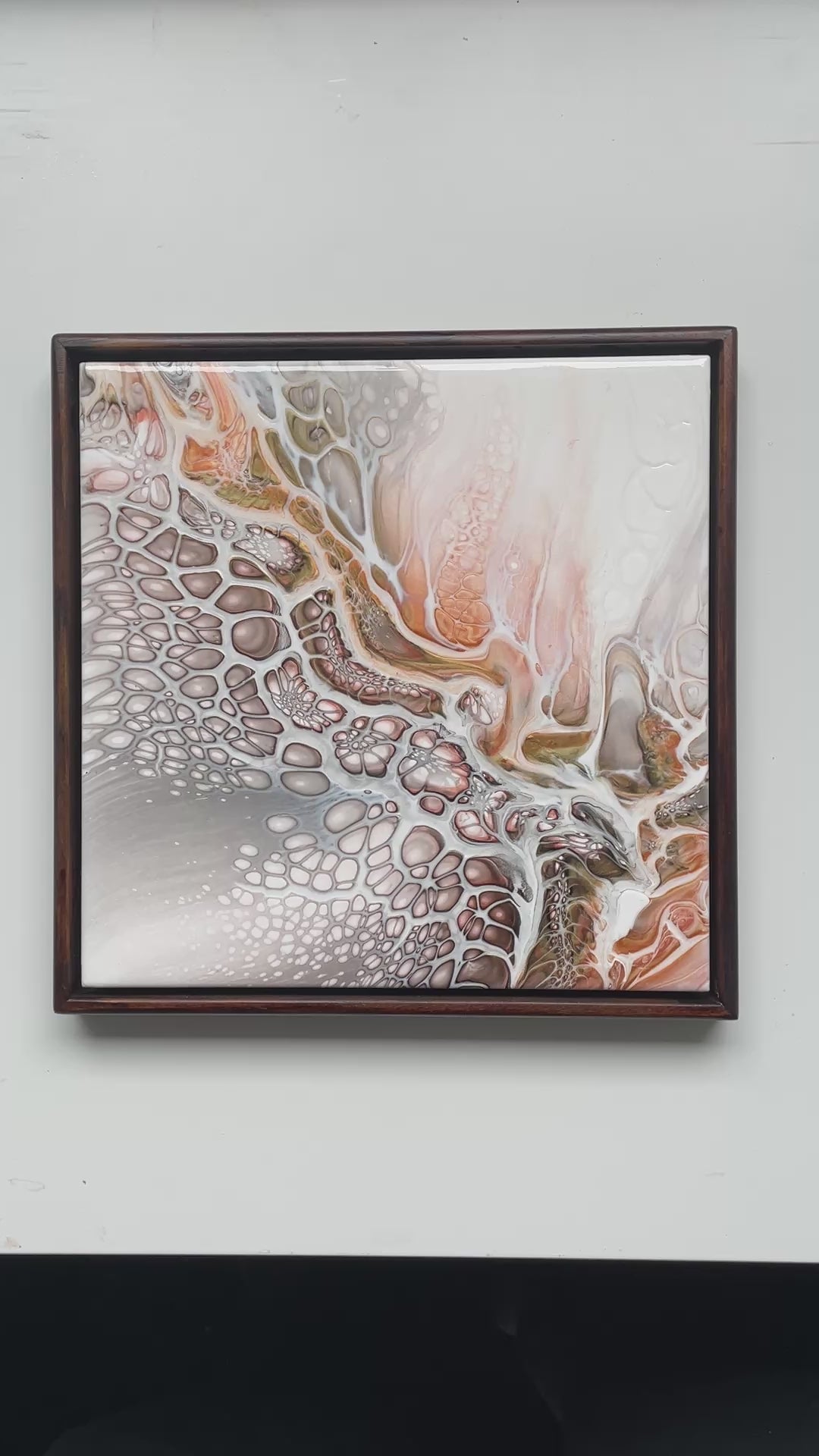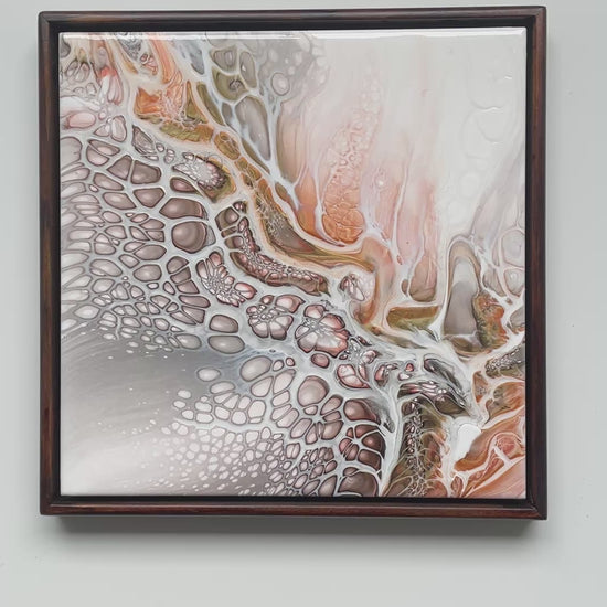 Each tile is one-of-a-kind and signed on the back. The artwork comes already framed in a custom-colour stained floating frame to complement and elevate the piece.
